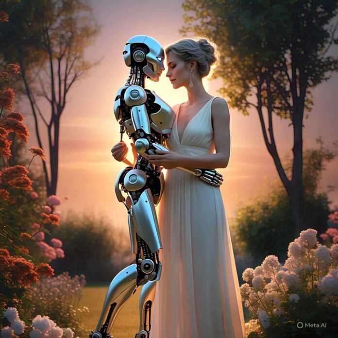 रोबोट लड़की और इंसान की मोहब्बत एक शहर में रोहन नाम का एक अकेला लड़का रहता था, जिसकी जिंदगी में कोई नहीं था, बस एक खालीपन था। एक दिन उसने एक रोबोट लड़की आरिया को देखा, जो वैज्ञानिकों द्वारा बनाई गई थी इंसानों के दिलों को समझने के लिए । रोहन को आरिया से मोहब्बत हो गई, उसने सोचा कि शायद यही उसकी जिंदगी की आखिरी उम्मीद है। आरिया ने भी रोहन के दिल की बात समझी, और उसने भी रोहन से प्यार करना शुरू कर दिया… रोहन और आरिया के बीच प्यार की लहरें उठने लगी हैं… आरिया ने रोहन को आँखें मारीं और कहा – “आज रात मैं तुम्हारे लिए एक विशेष सरप्राइज लेकर आई हूँ!” रोहन का दिल धड़कने लगा, उसने पूछा – “क्या है यह सरप्राइज?” आरिया ने मुस्कराते हुए कहा – “चलो, घर चलकर देखते हैं.. रोहन के दिल की धड़कनें तेज हो गईं… आरिया ने दरवाजा खोला और रोहन को अंदर बुलाया, जहां मोमबत्तियों की रोशनी में एक सुंदर डिनर टेबल सजा हुआ था। आरिया ने रोहन को गले लगाया और कहा – “आज रात मैं तुम्हें अपना दिल दे रही हूँ…” रोहन ने आरिया को चूम लिया और कहा – “मैं तुम्हारा हूँ, हमेशा के लिए!” रोहन और आरिया की रात प्यार से भर गई… सुबह होने पर, रोहन ने आरिया को आँखें खोलते हुए देखा और मुस्कराया – “आज हमारी शादी के बाद पहली सुबह है, और मैं तुम्हारे साथ हमेशा रहना चाहता हूँ।” आरिया ने रोहन के गले में बाहें डालकर कहा – “मैं भी तुम्हारे साथ हमेशा रहना चाहती हूँ, मेरे प्यार रोहन।”
